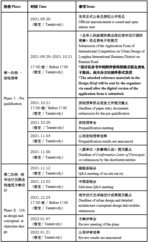 The mode of "open entry submission + invitation" is adopted for the present international competition, which consists of three phases, namely the pre-qualification, the urban design and conceptual architecture design, as well as the integration and further development of the accomplishments.