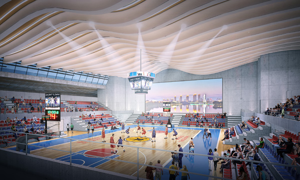項目被城市道路劃分為東西兩個地塊,西側(cè)地塊集中布置文體業(yè)態(tài),東側(cè)地塊集中布置商業(yè)及科創(chuàng)辦公,通過空中環(huán)形跑道將所有業(yè)態(tài)串聯(lián)整合,形成周邊群山林立、中間體育公園的空間形態(tài)?傮w規(guī)劃有8個建筑單元,涵蓋十大功能,包括體育館、健身館、體育主題商旅中心、成人教育學院、美術(shù)館、圖書館等。